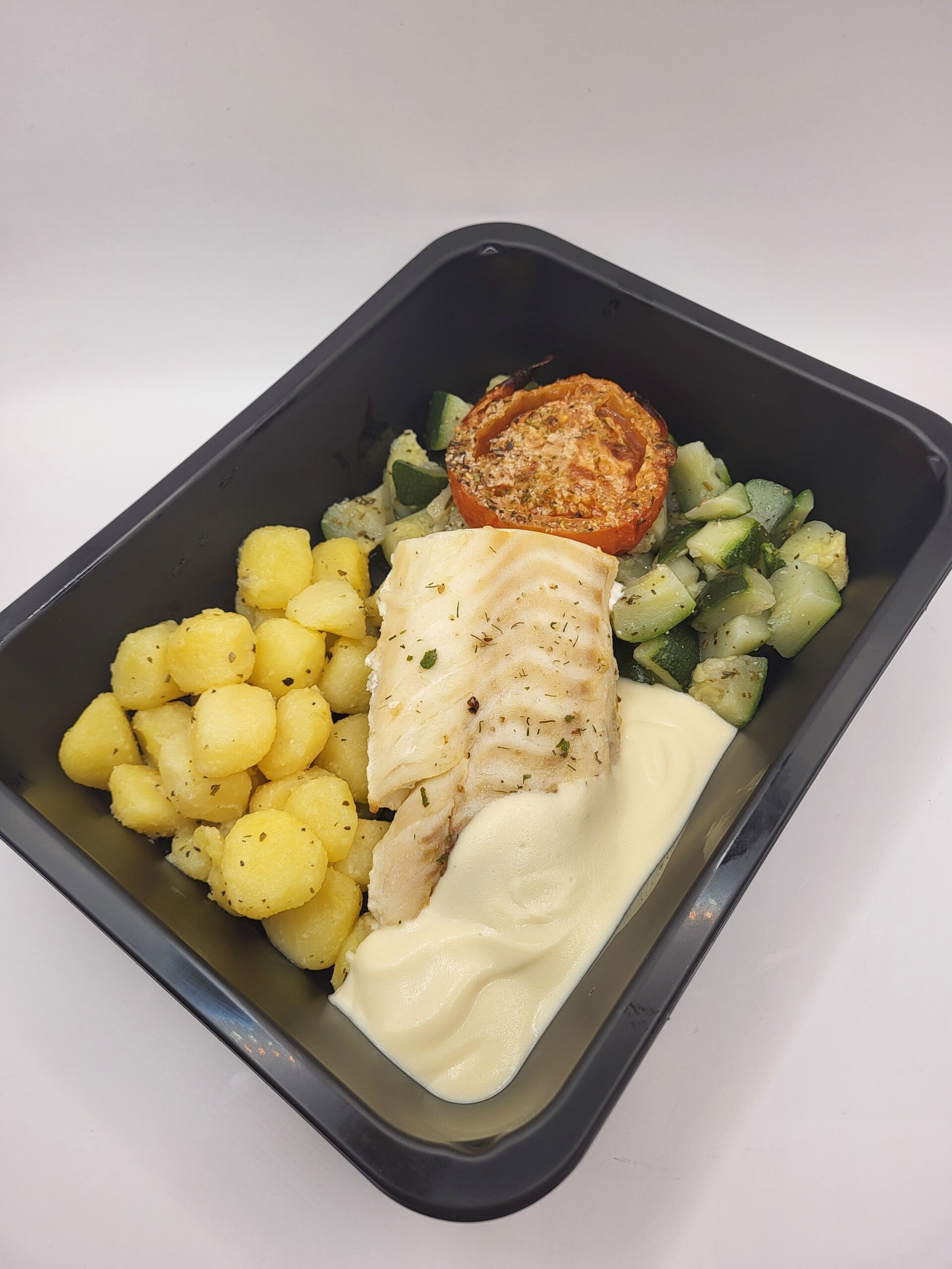 Kabbeljauw, courgette/tomaat, lookkrieltjes